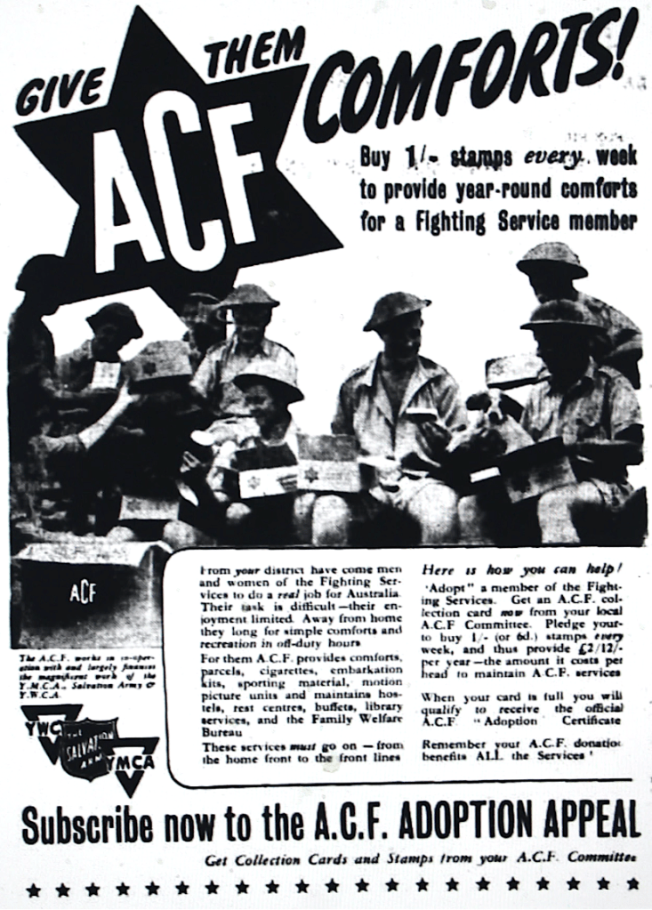 Subscriptions invited to the Australian Comforts Fund Adoption Appeal [Dungog Chronicle 21 May 1943]