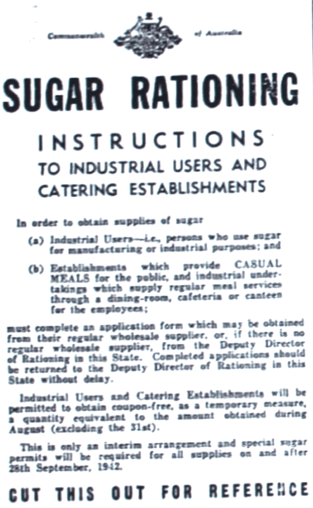 Sugar rationing introduced [Raymond Terrace Examiner and Lower Hunter and Port Stephens Advertiser, 3 September 1943]