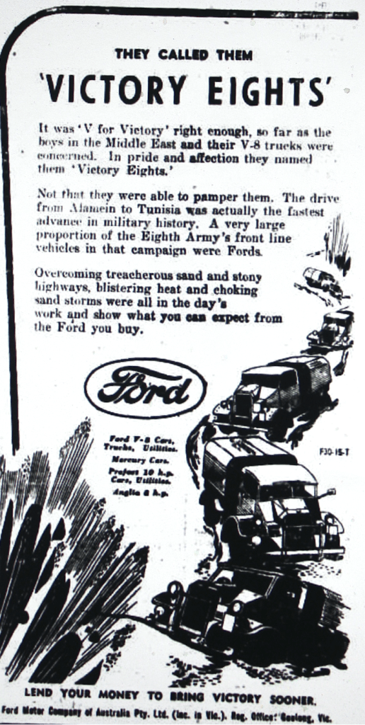 Ford used the success of their trucks during military action to promote their vehicles [Dungog Chronicle, 21 July 1944]