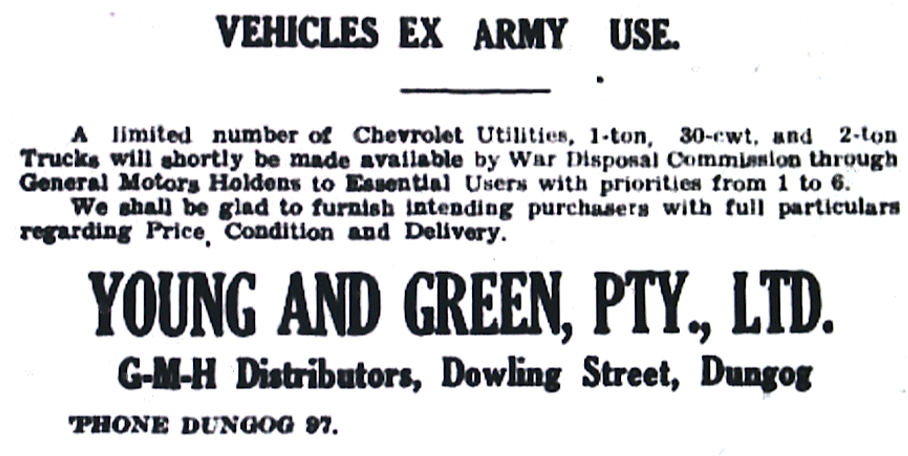 Surplus military vehicles become available for purchase [Dungog Chronicle, 16 February 1945]