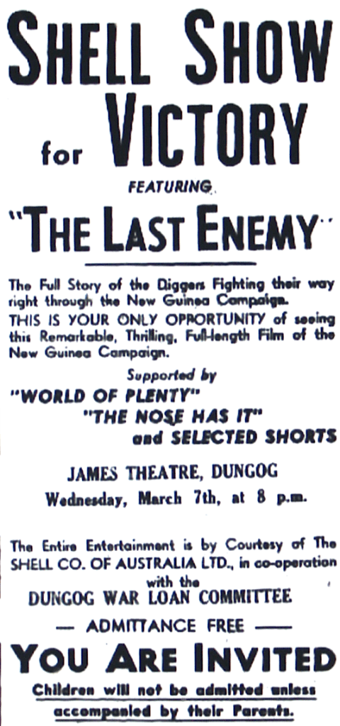 War themed movie promoted by the Dungog War Loan Committee [Dungog Chronicle, 2 March 1945]